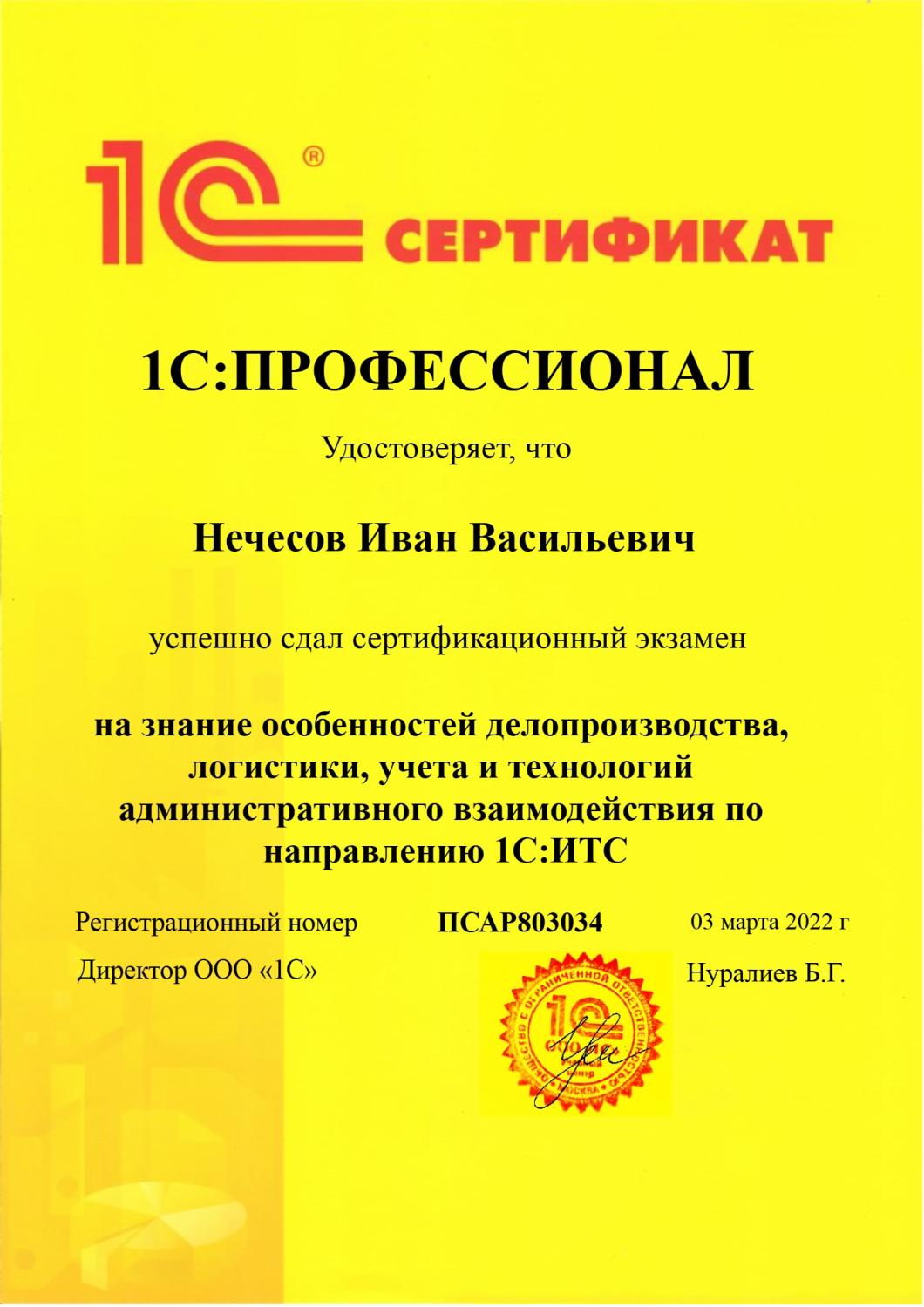 1С:Профессионал по внедрению и эксплуатации сервисов 1С-ИТС