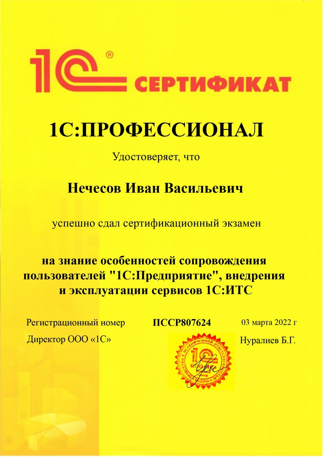 1С:Профессионал по сопровождению и продаже сервисов 1С-ИТС